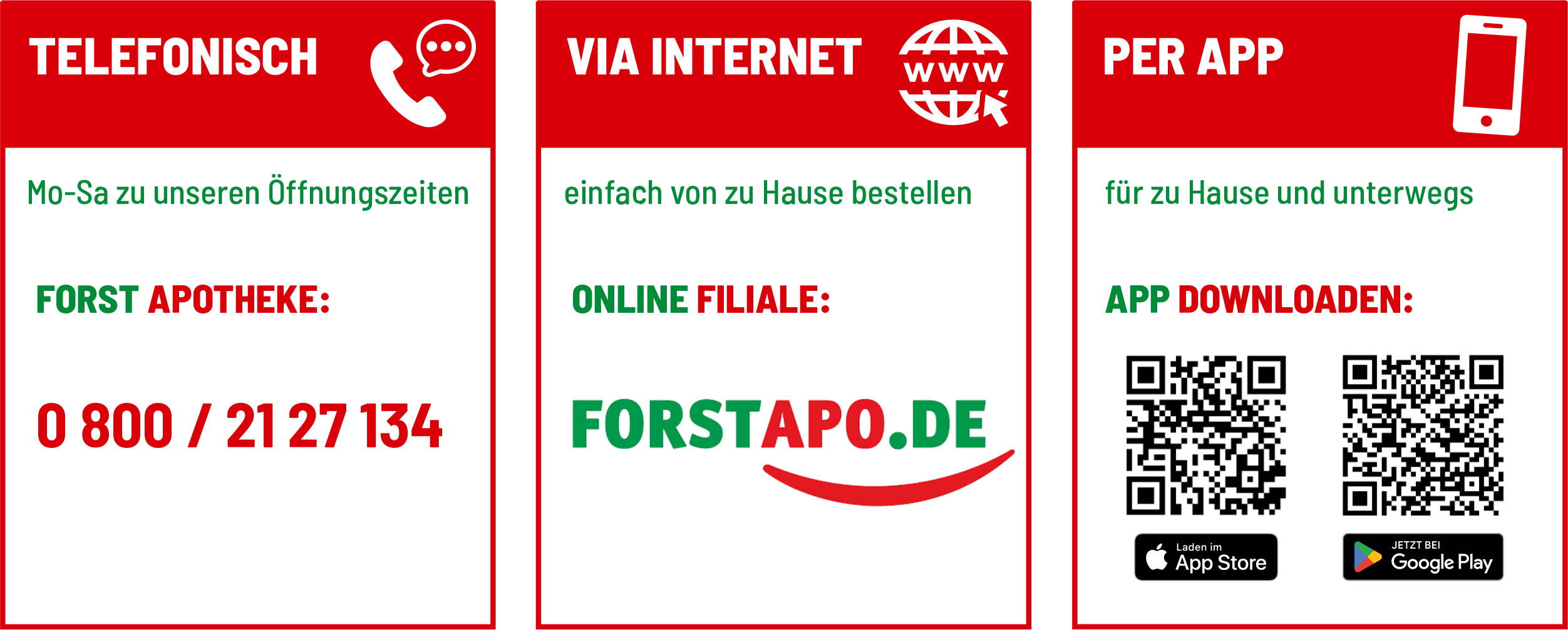 Zusätzlich können Sie auch unsere „kontaktlosen“ Einkaufsmöglichkeiten via Telefon, Webseite und App nutzen.